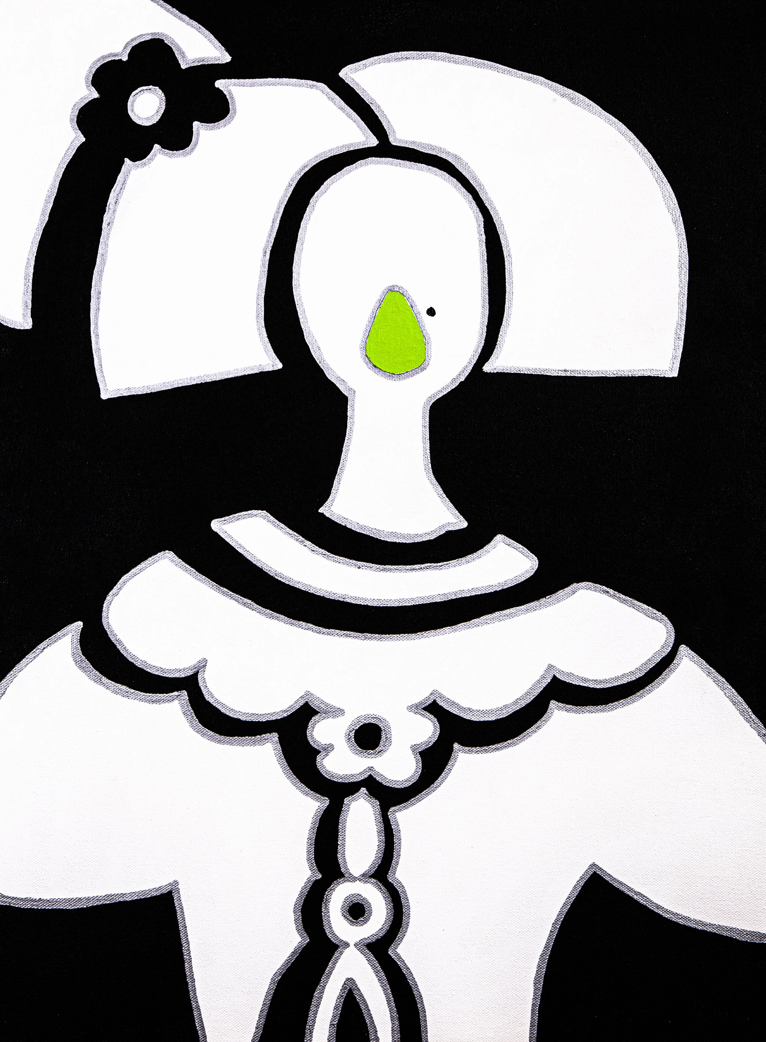 Acrylic on canvas -1 of 4 in a series - these Modern-day Meninas are reminiscent of my childhood days playing with paper dolls. The block style printing represent each of its attire pieces.